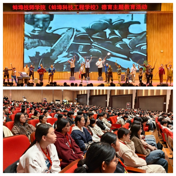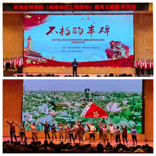 2025年11月14日下午2点,为深入推进德育主题教育,用艺术形式赓续红色血脉,由龙子湖区文化馆倾情创作的大型音乐史诗《不朽的丰碑》在蚌埠技师学院剧场隆重上演。学院创新形式,采取线上线下同步方式,为全体学生带来了一场震撼心灵的精神盛宴。