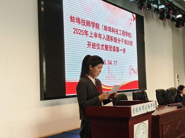 为进一步加强共青团组织建设,引导入团积极分子坚定理想信念、强化责任担当,4月17日,蚌埠技师学院(蚌埠科技工程学校)2025年上半年入团积极分子培训班开班仪式暨团课第一讲在学校多功能报告厅顺利举行,233名入团积极分子参加此次培训。