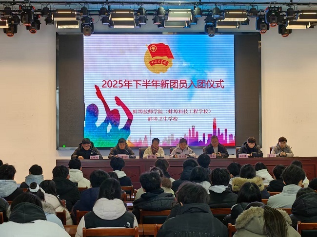 1月7日,我校多功能报告厅内团旗飘扬、气氛热烈庄重,2025年下半年新发展团员入团仪式在此顺利举行。校团委教师陈琪曼、各系部团员发展工作指导教师与全体新发展团员齐聚一堂,共同见证这一意义非凡的时刻。